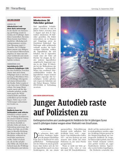 und 15-jährigen Iraker wegen einer Vielzahl von Straftaten.