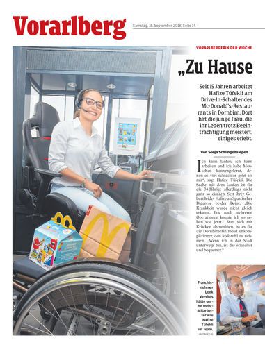 Seit 15 Jahren arbeitet Hafize Tüfekli am Drive-In-Schalter des Mc-Donald’s-Restaurants in Dornbirn. Dort hat die junge Frau, die ihr Leben trotz Beeinträchtigung meistert, einiges erlebt.