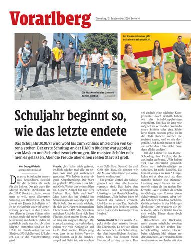 Das Schuljahr 2020/21 wird wohl bis zum Schluss im Zeichen von Corona stehen. Der erste Schultag an der HAK in Bludenz war geprägt von Masken und Sicherheitsvorkehrungen. Die meisten Schüler nehmen es gelassen. Aber die Freude über einen realen Start ist groß.