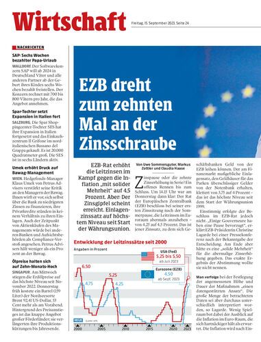 EZB-Rat erhöht die Leitzinsen im Kampf gegen die Inflation „mit solider Mehrheit“ auf 4,5 Prozent. Aber: Der Zinsgipfel scheint erreicht. Einlagenzinssatz auf höchstem Niveau seit Start der Währungsunion.