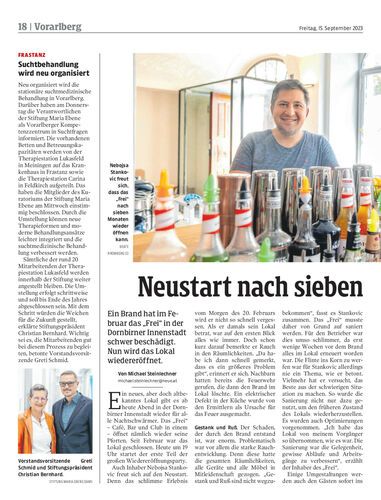 Ein Brand hat im Februar das „Frei“ in der Dornbirner Innenstadt schwer beschädigt. Nun wird das Lokal wiedereröffnet.