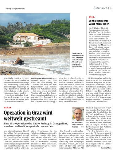 Eine Milz-Operation wird heute Freitag in Graz gefilmt, um dann weltweit ausgestrahlt zu werden.