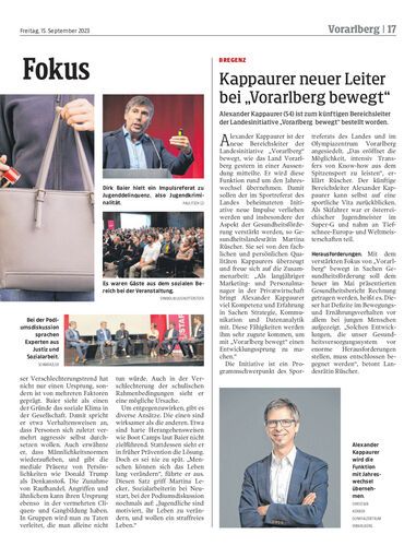 Alexander Kappaurer (54) ist zum künftigen Bereichsleiter der Landesinitiative „Vorarlberg bewegt“ bestellt worden.