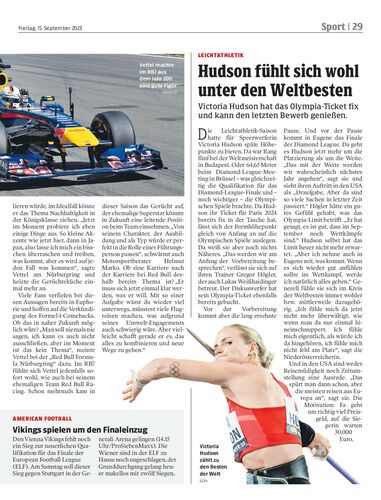 Victoria Hudson hat das Olympia-Ticket fix und kann den letzten Bewerb genießen.