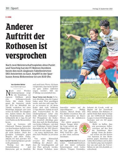 Nach zwei Meisterschaftsspielen ohne Punkt und Torerfolg hat der FC Mohren Dornbirn heute den noch sieglosen Tabellenletzten SKU Amstetten zu Gast. Anpfiff in der Sparkasse Arena Birkenwiese ist um 18.10 Uhr.