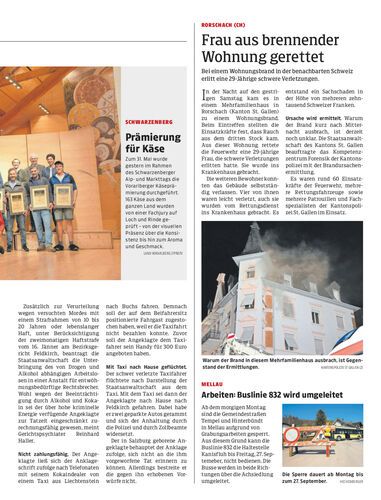 Bei einem Wohnungsbrand in der benachbarten Schweiz erlitt eine 29-Jährige schwere Verletzungen.