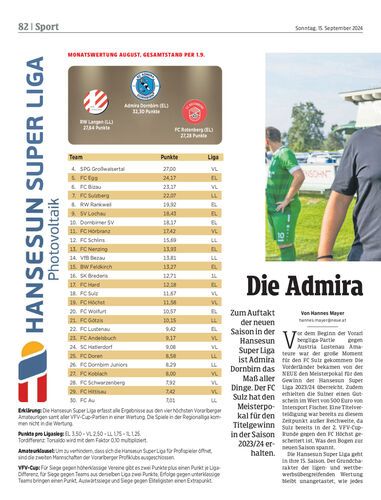 Zum Auftakt der neuen Saison in der Hansesun Super Liga ist Admira Dornbirn das Maß aller Dinge. Der FC Sulz hat den Meisterpokal für den Titelgewinn in der Saison 2023/24 erhalten.