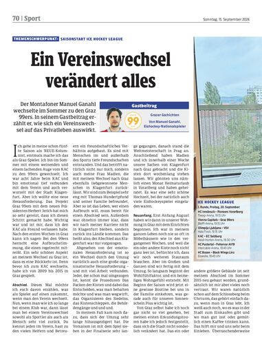 Der Montafoner Manuel Ganahl wechselte im Sommer zu den Graz 99ers. In seinem Gastbeitrag erzählt er, wie sich ein Vereinswechsel auf das Privatleben auswirkt.