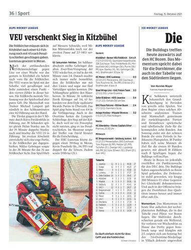 Die Feldkircher müssen sich in Kitzbühel nach einer 4:2-Führung noch mit 4:5 nach Penaltyschießen geschlagen geben. Lustenau gewinnt in Meran.