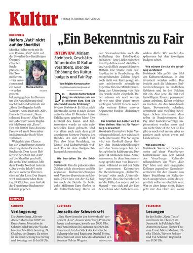 Interview. Mirjam Steinbock, Geschäftsführerin der IG Kultur Vorarlberg, über die Erhöhung des Kulturbudgets und Fair Pay.