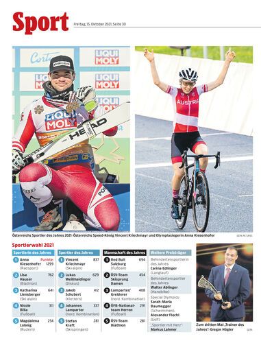 Bei der Wahl zu Österreichs Sportlern des Jahres setzten sich Vincent Kriechmayr und Anna Kiesenhofer die Kronen auf.