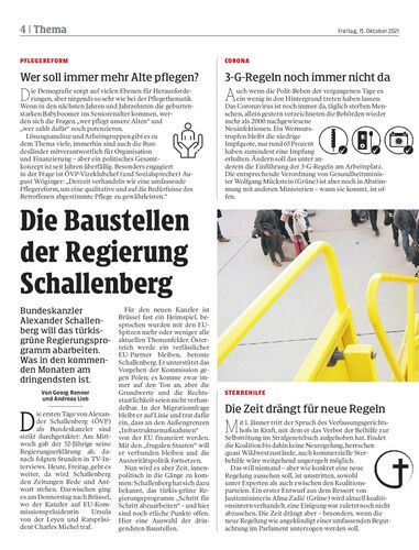 Bundeskanzler Alexander Schallenberg will das türkis-grüne Regierungsprogramm abarbeiten. Was in den kommenden Monaten am dringendsten ist.