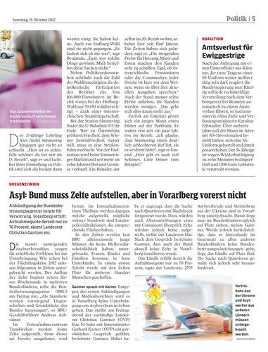 Ankündigung der Bundesbetreuungsagentur sorgte für Verwirrung. Vorarlberg erfüllt Aufnahmequote derzeit nur zu 70 Prozent, räumt Landesrat Christian Gantner ein.