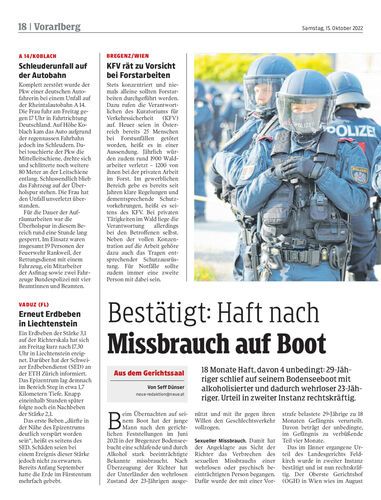 18 Monate Haft, davon 4 unbedingt: 29-Jähriger schlief auf seinem Bodenseeboot mit alkoholisierter und dadurch wehrloser 23-Jähriger. Urteil in zweiter Instanz rechtskräftig.