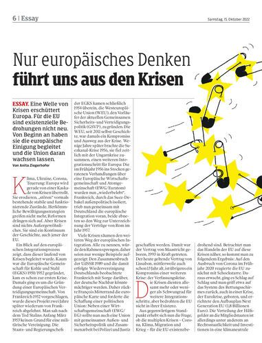 ESSAY. Eine Welle von Krisen erschüttert Europa. Für die EU sind existenzielle Bedrohungen nicht neu. Von Beginn an haben sie die europäische Einigung begleitet und die Union daran wachsen lassen. Von Anita Ziegerhofer
