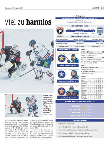 Spielbericht. Die Bemer Pioneers Vorarlberg verlieren mit 0:4 gegen Fehervar. Die Feldkircher sind vor 1233 Zuschauern in der Vorarlberghalle allem Einsatz zum Trotz letztlich völlig chancenlos.