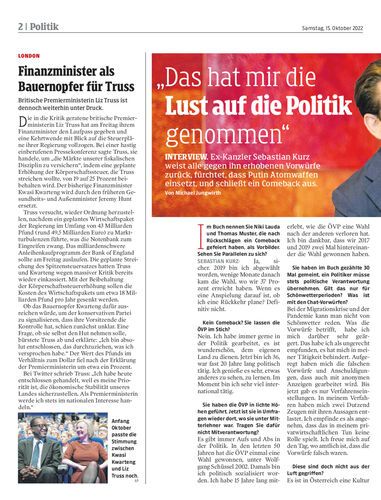 INTERVIEW. Ex-Kanzler Sebastian Kurz weist alle gegen ihn erhobenen Vorwürfe zurück, fürchtet, dass Putin Atomwaffen einsetzt, und schließt ein Comeback aus. Von Michael Jungwirth