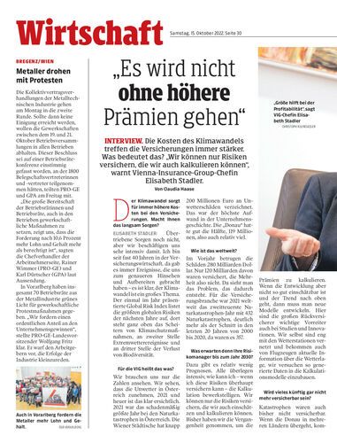 INTERVIEW. Die Kosten des Klimawandels treffen die Versicherungen immer stärker. Was bedeutet das? „Wir können nur Risiken versichern, die wir auch kalkulieren können“, warnt Vienna-Insurance-Group-Chefin Elisabeth Stadler. Von Claudia Haase