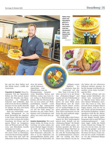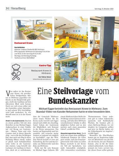 Michael Egger betreibt das Restaurant Krone in Hörbranz. Zum Skandal-Video von Kanzler Nehammer hatte er eine besondere Idee.