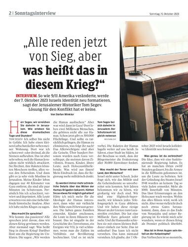 Interview. So wie 9/11 Amerika veränderte, werde der 7. Oktober 2023 Israels Identität neu formatieren, sagt der Jerusalemer Historiker Tom Segev. Lösung für den Konflikt hat er keine. Von Stefan Winkler