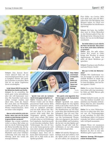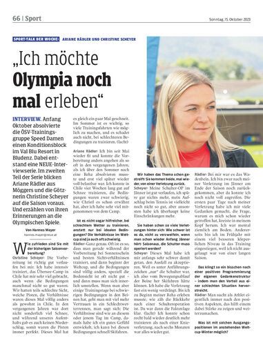 Interview. Anfang Oktober absolvierte die ÖSV-Trainingsgruppe Speed Damen einen Konditionsblock im Val Blu Resort in Bludenz. Dabei entstand eine NEUE-Interviewserie. Im zweiten Teil der Serie blicken Ariane Rädler aus Möggers und die Götznerin Christine Scheyer auf die Saison voraus. Und erzählen von ihren Erinnerungen an die Olympischen Spiele.