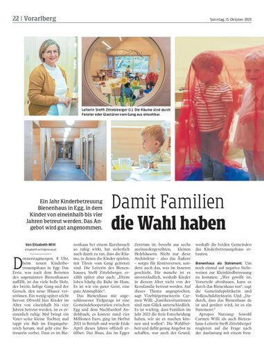 Ein Jahr Kinderbetreuung Bienenhaus in Egg, in dem Kinder von eineinhalb bis vier Jahren betreut werden. Das Angebot wird gut angenommen.