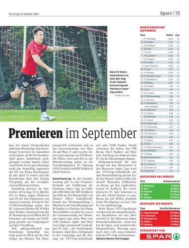 BW Feldkirch führt erstmals in der Geschichte der Hansesun Super Liga die Gesamtwertung an. Den Monatssieg September holte sich der FC Rotenberg.