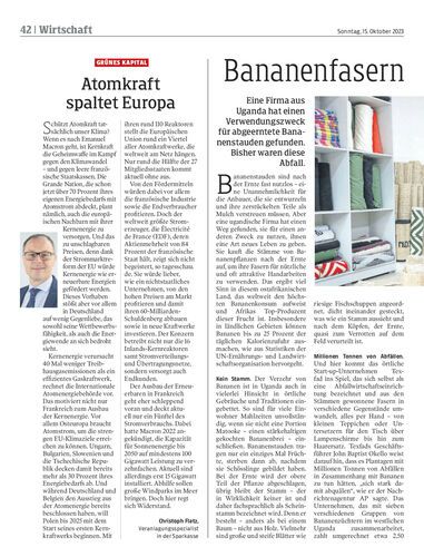 Eine Firma aus Uganda hat einen Verwendungszweck für abgeerntete Bananenstauden gefunden. Bisher waren diese Abfall.