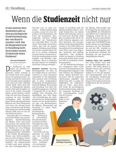 In den meisten Bundesländern gibt es eine psychologische Studentenberatung, die vom Bund finanziert wird. Nur im Burgenland und in Vorarlberg nicht. Doch haben unsere Studierende keine Probleme?