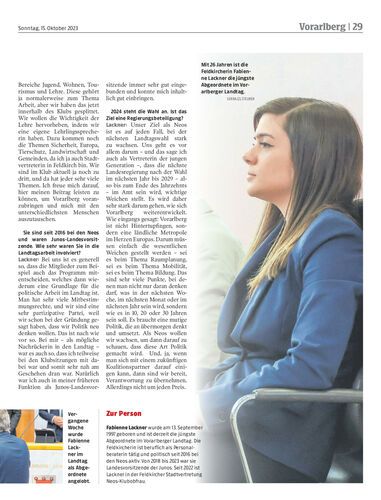 Interview. Neos-Abgeordnete Fabienne Lackner über ihre erste Landtagssitzung, die Frage des leistbaren Wohnens und die Ziele für die Landtagswahl im kommenden Jahr.