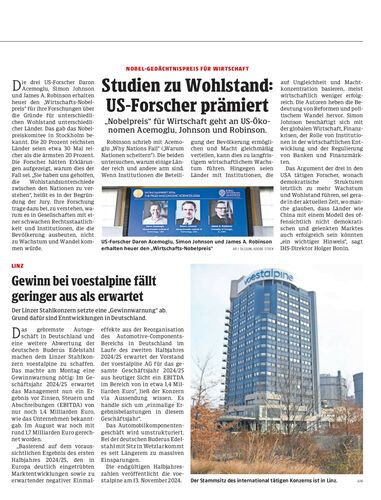 Studien zu Wohlstand:US-Forscher prämiert