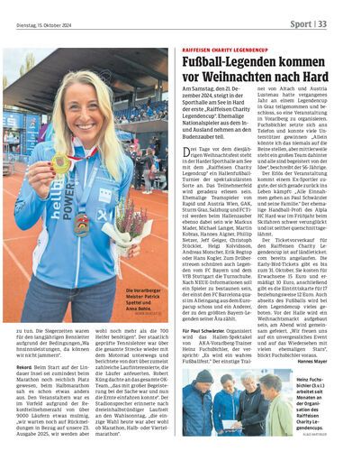 Am Samstag, den 21. Dezember 2024, steigt in der Sporthalle am See in Hard der erste „Raiffeisen Charity Legendencup“. Ehemalige Nationalspieler aus dem In- und Ausland nehmen an den Budenzauber teil.