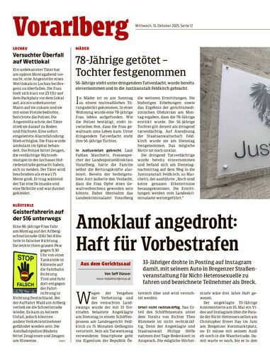 56-Jährige steht unter dringendem Tatverdacht, wurde bereits einvernommen und in die Justizanstalt Feldkirch gebracht.