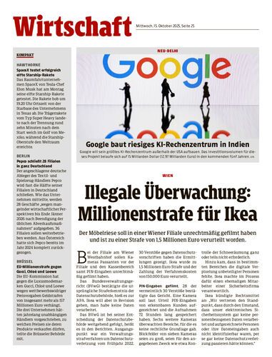 Der Möbelriese soll in einer Wiener Filiale unrechtmäßig gefilmt haben und ist zu einer Strafe von 1,5 Millionen Euro verurteilt worden.