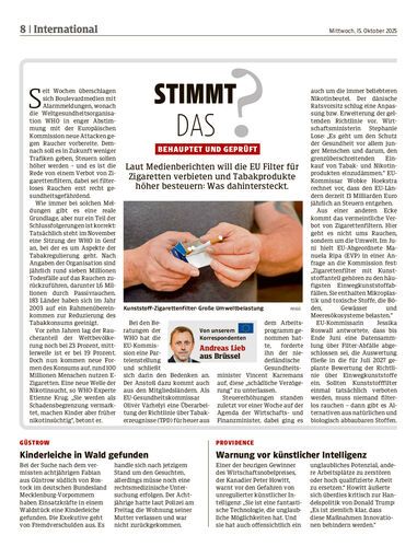 Laut Medienberichten will die EU Filter für Zigaretten verbieten und Tabakproduktehöher besteuern: Was dahintersteckt.