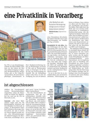 Medical Center Rheintal in Lustenau will bis in eineinhalb Jahren eine ambulante Vollversorgung auf Wahlarzt-Basis anbieten. Nächster Schritt ist die Gründung einer Privatklinik.
