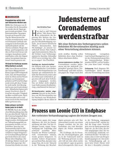 Die Regierung tut gut daran, das Verbotsgesetz nachzuschärfen und Relativierungen wie „Ungeimpft“-Judensterne zu verbieten. Es geht um den Grundkonsens der Republik.