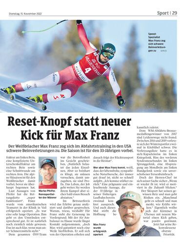 Der Weißbriacher Max Franz zog sich im Abfahrtstraining in den USA schwere Beinverletzungen zu. Die Saison ist für den 33-Jährigen vorbei.