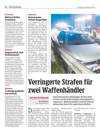 Vom Einkommen abhängiger Teil der Geldstrafen wurde in Berufungsverhandlung herabgesetzt. Waffenhändlerin und ihr Partner verkauften drei nicht registrierte Waffen.