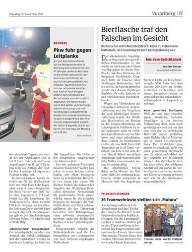 Barbesucher erlitt Nasenbeinbruch. Keine zu verbüßende Haftstrafe, weil Angeklagter doch noch geständig war.