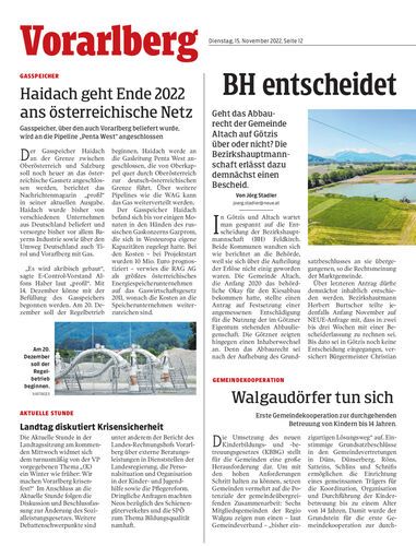 Gasspeicher, über den auch Vorarlberg beliefert wurde, wird an die Pipeline „Penta West“ angeschlossen