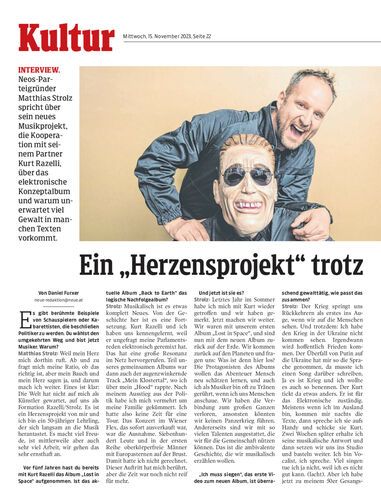 Interview. Neos-Parteigründer Matthias Strolz spricht über sein neues Musikprojekt, die Kooperation mit seinem Partner Kurt Razelli, über das elektronische Konzeptalbum und warum unerwartet viel Gewalt in manchen Texten vorkommt.