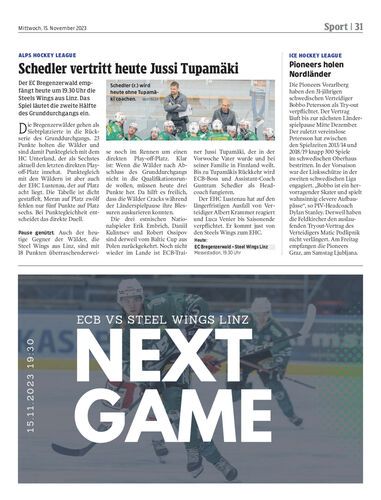Der EC Bregenzerwald empfängt heute um 19.30 Uhr die Steels Wings aus Linz. Das Spiel läutet die zweite Hälfte des Grunddurchgangs ein.