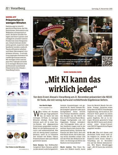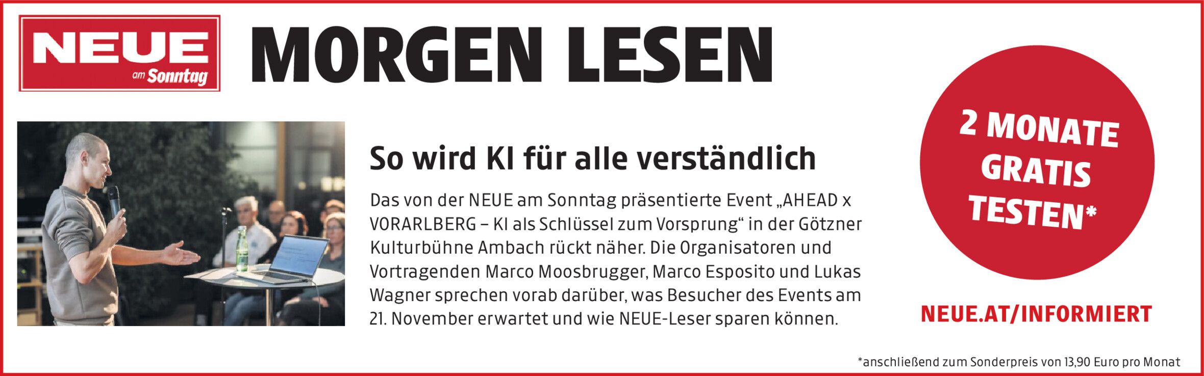 Vor dem Event Ahead x Vorarlberg am 21. November präsentiert die NEUE KI-Tools, die mit wenig Aufwand verblüffende Ergebnisse liefern.