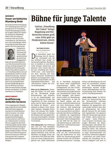 Caritas: „Vorarlberg Hot Talent“ bringt Begabung und Kinderrechte erneut groß raus. Erlös geht an Förderzentrum „Emils kleine Sonne“.