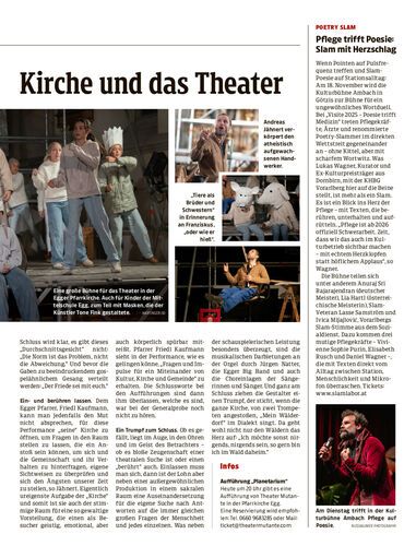 Heute gibt es in der Egger Pfarrkirche großes Theater zu großen Fragen: Wo liegen Segen und Fluch der modernen Welt?