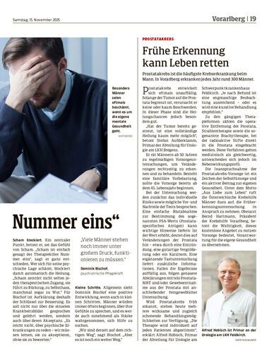 Prostatakrebs ist die häufigste Krebserkrankung beim Mann. In Vorarlberg erkranken jedes Jahr rund 300 Männer.