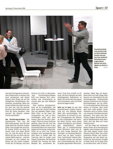 So viel Interesse wie der Auftritt des deutschen Mentaltrainers Clemens Maria Mohr hat noch kein vom VLV veranstalteter Vortrag hervorgerufen. Der 65-Jährige appellierte, morgens nicht griesgrämig aus dem Haus zu gehen und sich nicht die ganze Zeit einzureden, dass das Wetter eh zu schlecht wäre für ein gutes Training.