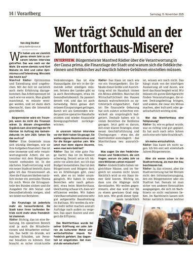 Interview. Bürgermeister Manfred Rädler über die Verantwortung in der Causa prima, die Finanzlage der Stadt und warum sich die Feldkircherinnen und Feldkircher auf deutlich höhere Gebühren einstellen müssen.