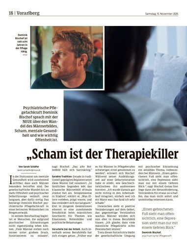 Psychiatrische Pflegefachkraft Dominik Bischof sprach mit der NEUE über den Wandel des Männerbildes, Scham, mentale Gesundheit und wie wichtig Offenheit ist.